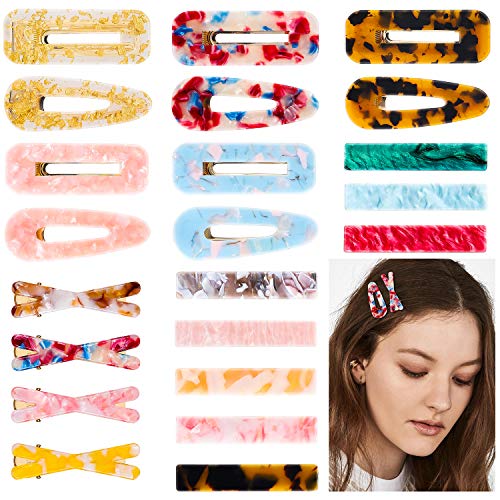 • GROBRO7 22Pcs Acrylic Hair Clips Hair Barrettes Alloy Resin Hairpins Geometric Alligator Barrettes Vintage Wrapped Hair Accessories for Women Fashion Headwear Styling Tools