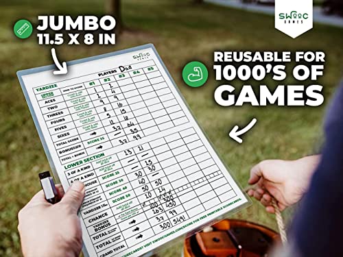 • SWOOC Games - Yardzee, Farkle & 20+ Giant Dice Games (All Weather) Yard Dice with Wooden Bucket, 5 Scorecards & Marker - Jumbo Dice Yard Game - Extra Large Yard Games for Adults - Jumbo Lawn Games