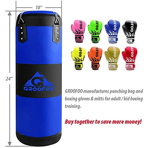 • GROOFOO Kids Boxing Bag for Punching Sparring, UNFILLED Oxford Punch Bag with Mount Set, 24"/Blue