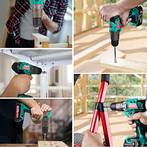 • Cordless Drill Driver, HYCHIKA 18V 35N·m Compact Electric Drill Cordless Set With 22PCS Accessories,1H Fast Charging, Variable Speed & Built-in LED for Drilling Wood, Metal and Plastic