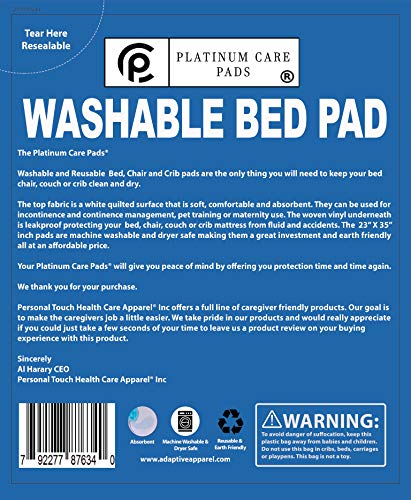 • Platinum Care PadsTM Washable Reusable Bed Pads - Beige, Medium (Size 23x35) 4 Pack (1 Blue 1 Green 1 Pink 1 Beige)