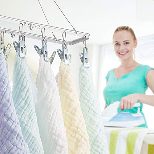 • Senbowe Foldable Clip and Drip Hanger, Clothes Drying Rack Sock Hanger Underwear Hanger with 12 Clips, Hanger for Drying Towels, Bras, Baby Clothes, Gloves, Aluminium Alloy Laundry Sock Drying Rack