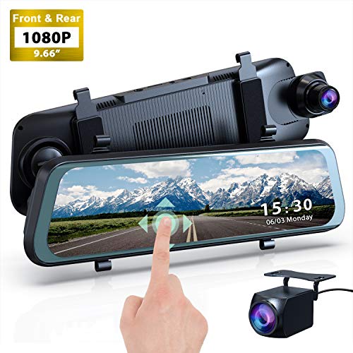 • Mirror Dash Cam, 1080P HD 9.66" Streaming Media Full Touch Screen Car Camera Featured with 170° Front Camera, 160° Rear Camera, Night Vision, G-Sensor, WDR, Parking Monitor and Assist