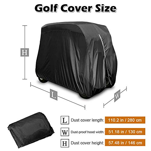 HOMEYA Golf Cart Cover,Waterproof Snowproof Golf Club Cover for 4 Passenger Seat Fit EZ GO,Club Car Precedent,Yamaha Drive Easy-On Golf Carts Cover with Rear Zipper Up to 112 Inch (210D)