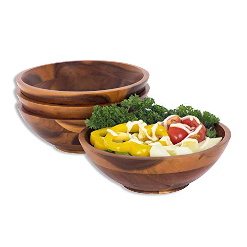 Home and Kitchen Space Wooden Bowl for Individual Meal - Pack of 4 Severing bowls for Salad, Pasta, Cereal, Rice and Snacks- 7 X 2.5 inches Acacia Wood Bowls for Christmas, Birthday and Anniversary Parties