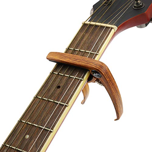 • PACETAP Guitar Capo for Acoustic and Electric Guitars 6/12 String, Bass Ukulele Mandolin Banjo with Picks and Picks Holder - Wood