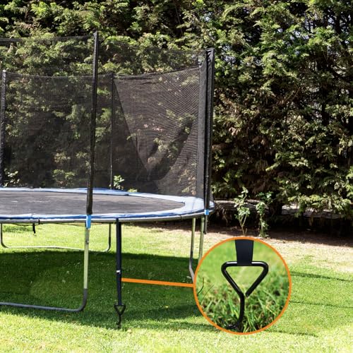 • Eurmax USA Trampoline Stakes Heavy Duty Trampoline Parts Corkscrew Shape Steel Stakes Anchor Kit with T Hook for Trampolines -Set of 4 Bonus 4 Strong Belt,Black