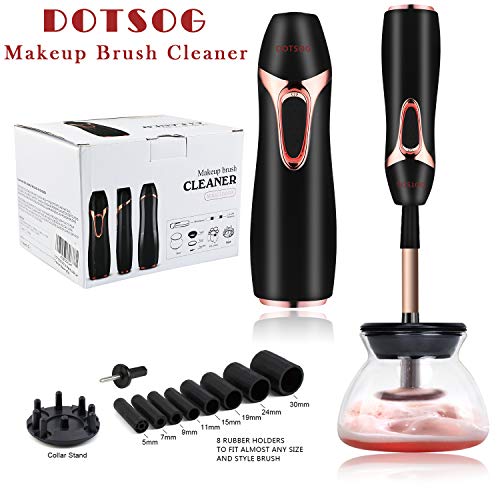 • Pro Makeup Brush Cleaner, DOTSOG Electric Automatic Cosmetic Brushes Cleaner and Dryer with 360º Rotation, 8 Rubber Professional Makeup Brush Cleaning Tool for Makeup Brush, Beauty, Women Gifts