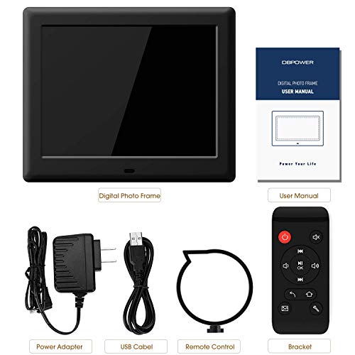 DBPOWER 8 Inch Digital Photo Frame - 1024x768 IPS HD Display Electronic Picture Frame with Calendar, Time, Auto Switch, Music, Slideshow, Video, Support 32GB USB Drives/SD Card, Remote Control Item Sku:
