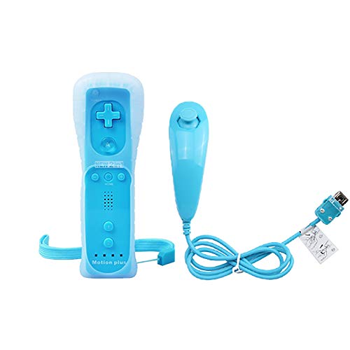 • Wii Remote, WADEO Built in Motion Plus Remote and Nunchuck Controller+Case for Nintendo Wii&Wii U (Blue)