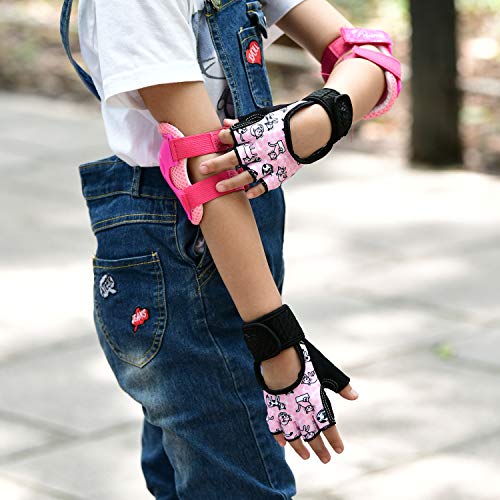 • Vgo... 2Pairs Age 5-6 Kids Half-Finger Breathable Skateboarding Gloves Outdoor Gloves with Anti-Slip Padding Palm (Size M, Pink, SL6084)