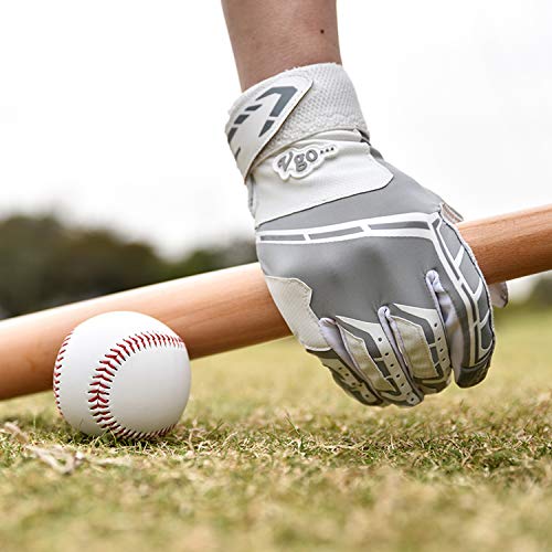 • Vgo... 2Pairs Men Baseball Batting Gloves Breathable Anti-Slip Soft Goatskin Leather Palm(Size L, Grey, SL9677)