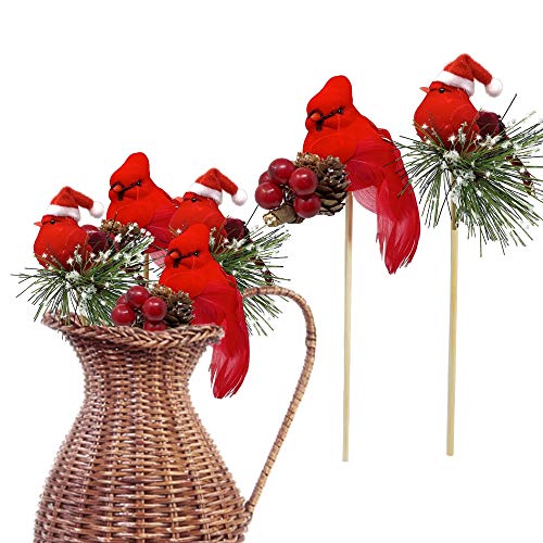 • Cardinals Chrismtas Ornaments - Set of 6 Floral Clip-On Xmas Decorations Cardinal Centerpiece Accent - Crafting Holiday Décor