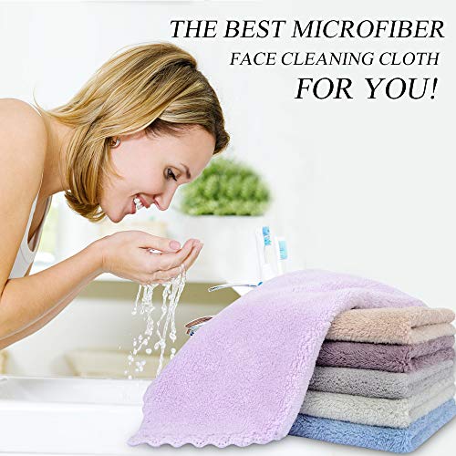 SUNLAND Microfiber Face Makeup Remover Cloth Reusable Facial Cleansing Towel Ultra Soft Face Washcloth 11inchx 11inch 6Pack, greyx1+dpurplex1+dbluex1+greenx1+lpurplex1+lbrownx