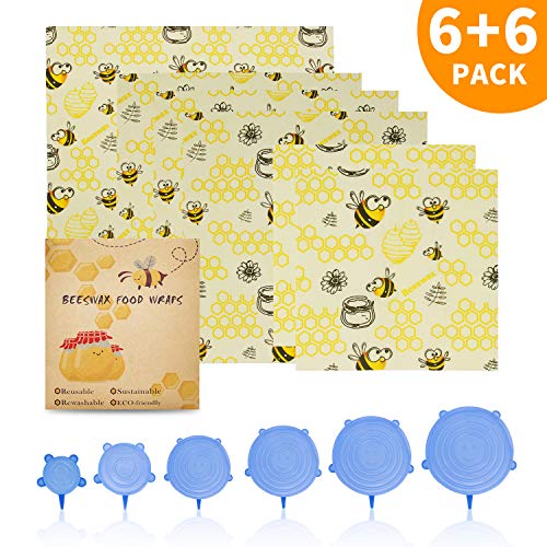 • Beeswax Wrap(6 pack)+ Silicone Lids(6 size), Wax Wraps For Food Reusable, Eco Friendly, Sustainable, Zero Waste, cover for Food to Keep Fresh - 2 Small, 3 Medium, 1 Large Bees Wrap