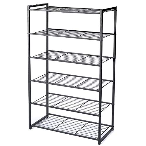 • HOUSE DAY 6 Tier Shoe Rack Organizer Entryway Shoe Storage, Black Shoe Rack with Premium Metal, Space-Saving Design, Easy to Assemble, 25 Inch Perfect Size, Sturdy & Elegant for Shoes Organizing