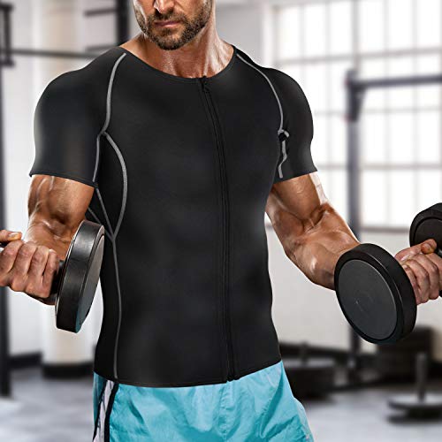 • TAILONG Neoprene Sweat Suit Weight Loss Shirt Men Exercise Clothes Sauna Hot Fitness Top Workout Body Shaper (Black, 4XL)