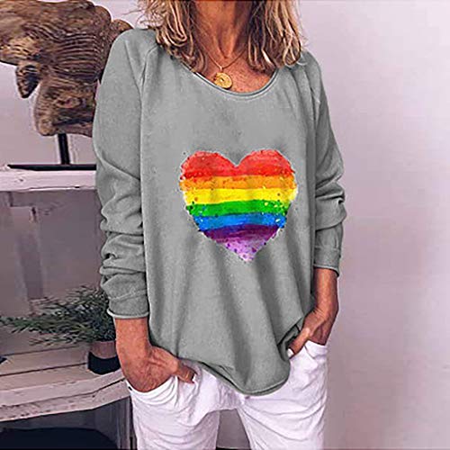 Alangbudu-Women's Long sleeve blouses & sweatshirts & hoodies Alangbudu Women Rainbow Heart Print Blouse Long Sleeve Swing T Shirt Loose Pullover Baggy Top Curved Hem Sweatshirt, womens, Gray