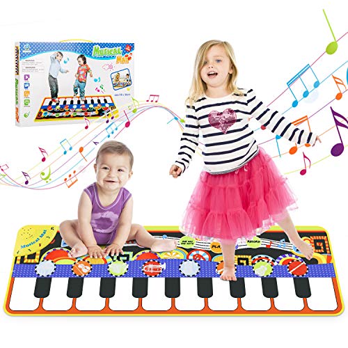 • WOSTOO Music Mat, 19 Keyboard PlayMat Piano Mat Dance Floor Mat with 8 Selectable Musical Instruments Early Education for Kids Toddler Girls Boys, 43.3'' x14.2''