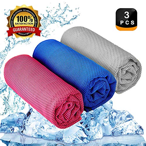 • YQXCC Cooling Towel 3 Pcs (47"x12") Microfiber Towel for Instant Cooling Relief, Cool Cold Towel for Yoga Golf Travel Gym Sports Camping Football & Outdoor Sports (Dark Blue/Rose Red/Light Gray)