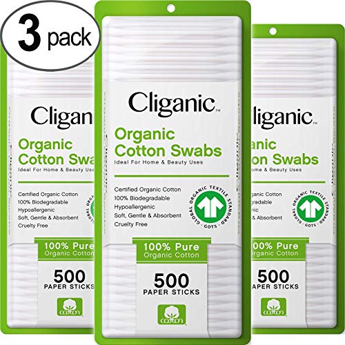 • Cliganic Organic Cotton Swabs, 1500 Count - 100% Pure Natural Cotton, Chlorine-Free Hypoallergenic, Soft, Gentle & Absorbent Buds