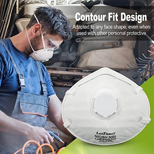 • LotFancy NIOSH N95 Mask, 15PCS Particulate Respirator with Breathing Valve, Disposable Air Filter Masks Against Dust, Pollution, Particle, Face Mask for Woodworking, Construction