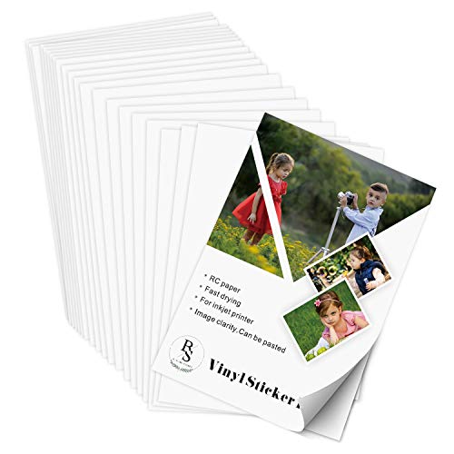 • Permanent Vinyl Sticker Paper - BS Matte White Self Adhesive Blank Waterproof RC Photographic Paper for Inkjet and Laser Printers - 8.5"x11" 20 Sheets