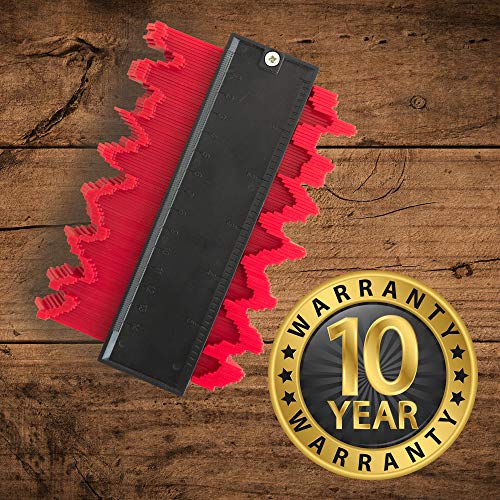 Coltinent Contour Duplicator Gauge Tool - Precise Shape Outline Duplication Irregular Profile 6 Inch Plastic Marking Ruler for Measuring Woodworking Floor Carpentry and Builder Pencil, Red