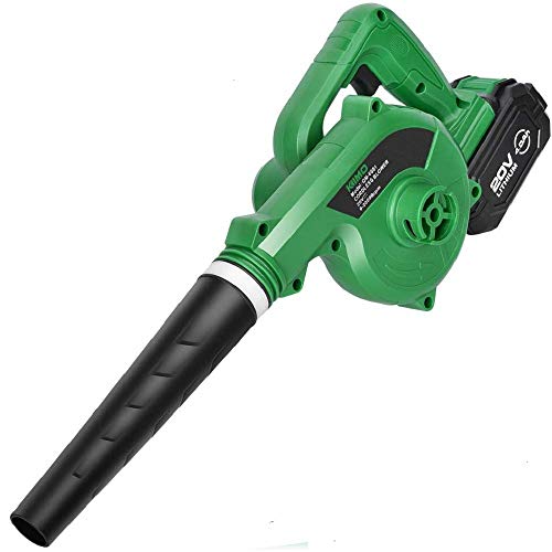 KIMO Cordless Leaf Blower - 20V 4.0 AH Lithium Battery Powered Lightweight, Compact 2 in 1 Sweeper & Vacuum for Clearing Dust, Leaf & Snow, Car Vacuum, Patio/Deck/Garden Cleaning, Garage Dusting, Green Cordless Leaf Blower Vacuum
