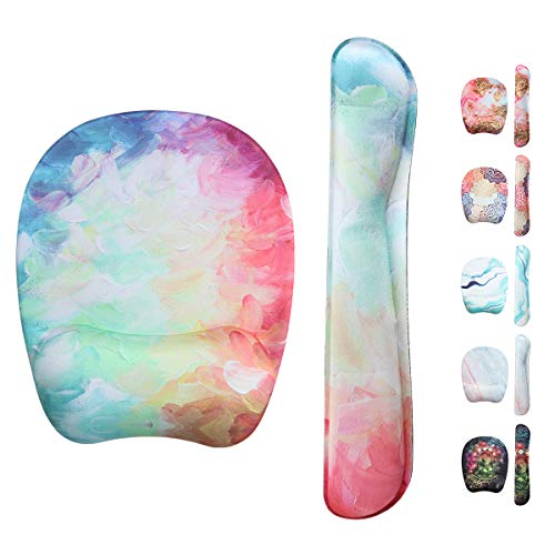 • Anyshock Keyboard Wrist Rest Pad Set and Mouse Pad with Wrist Support Memory Foam Filled Non Slip Durable Comfortable Lightweight for Easy Typing & Pain Relief-Ergonomic Support (Colorful Painted)