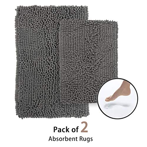 • Bathroom Rugs, Non-Slip Bath Mats Set, 2pcs Soft Shaggy Microfiber Chenille Bath Rugs, Ultra Absorbent Thick Runner Carpet for Shower Tub Bedroom Kitchen, Machine Washable (32"x20"/24"x17", Gray)