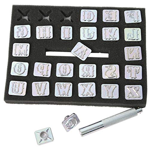 • Professional 27 Pieces Standard Alphabet Stamp Punch Set for Leathercraft (3/4 Inch, 19 mm Tall), Leather Craft Stamp Tools