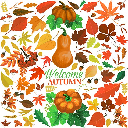 • 400 Pieces Fall Leaves Window Clings Stickers Thanksgiving Pumpkin Turkey Straw Hat Maple Leaves Acorns Window Stickers for Autumn Party Decorations, 3 Sheets (Style Set 1)