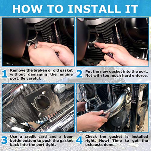 • vanjoy Exhaust Gasket for Harley, Made of Graphite and Steel Mesh for 1984-later Most Harley Davidson Bikes, Touring, Sportster, Dyna, Softail, Evo, etc. 1 Pair 2pcs