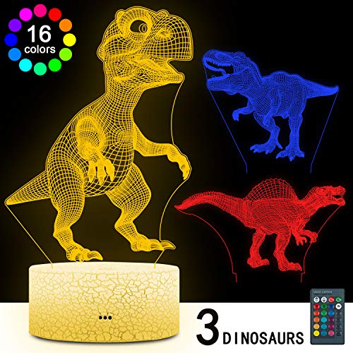 • 3D Night Light Dinosaur for Kids, 3D Illusion Lamp with Remote and Touch Control 16 Colors Changing 3D Illusion Night Light with 3 Acrylic Panels for Boys Girls Home Decoration