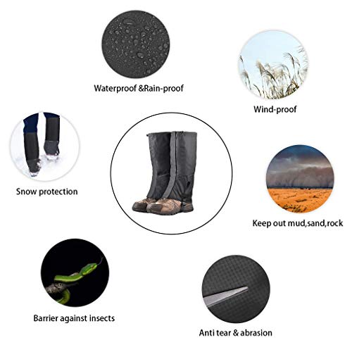 • MIS1950s Portable Hiking Leg Gaiters, Snow Boot Gaiters, Breathable Waterproof Walking High Leg Cover, Anti-Tear Oxford Fabric Ski Foot Cover, for Climbing Fishing Hunting Trimming Grass (Black)