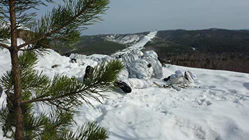Brand new Winter Camouflage Suit consisting of Hooded Jacket and Pants. The jacket has a large draw-stringed hood, designed to go over the helmet, elastic bands on the elbows for tighter fit, elastic cuffs on the sleeves, a zipper in the front and draw-stringed bottom. The pants have draw-stringed waist, elastic bands in the area of knees for tighter fit and elastic cuffs on the bottom. The outfit is available in free size and intended to be worn over your winter clothes.