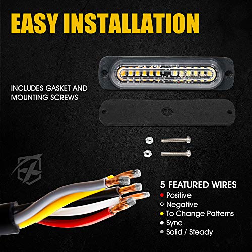 Xprite Amber/White 12 LED Emergency Strobe Lights Kit Surface Flush Mount Side Marker Grill Grille Hazard Warning Flashing Light Head for Off-Road Vehicles ATV Trucks Cars - 4Pcs, White Amber