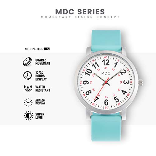 • Nurses Watches for Women Medical Nursing Watch with Second Hand Waterproof 12/24 Hour Analog Quartz Wrist Watches for Womens Work Casual EMT Wristwatch with Teal Silicone Strap by MDC