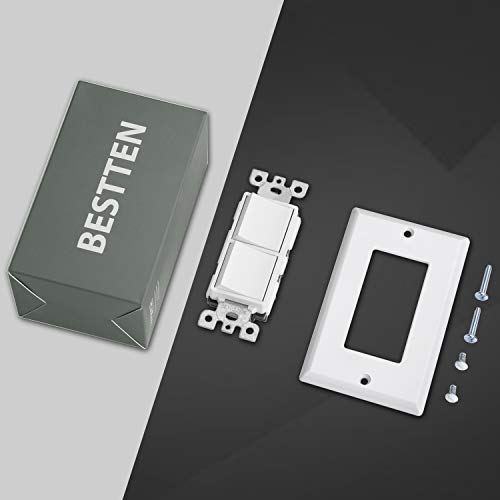 • [5 Pack] BESTTEN Double Light Switch, Single Pole, Combination Decorator On/Off Interrupters, 15A 120V, Dual Paddle Rockers, Wallplate Included, White