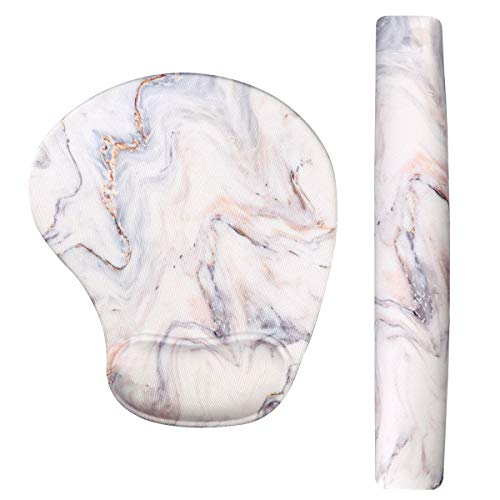 Anyshock Keyboard Wrist Rest and Mouse Wirst Rest Support Memory Foam Filled Non Slip Durable Comfortable Lightweight for Easy Typing & Pain Relief-Ergonomic Support (White Marble)