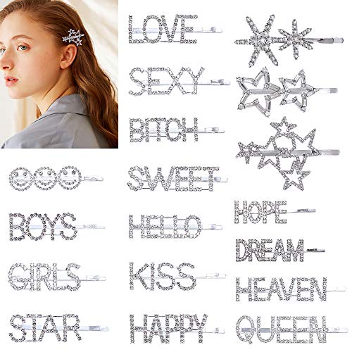 YMHPRIDE 18 Pcs Rhinestone Letter Hair Clips Sparkly Star Hair Pins Crystal Words Letter Hairpins Hair Clips Bling Handmade Luxury Hair Barrettes Headwear Accessories