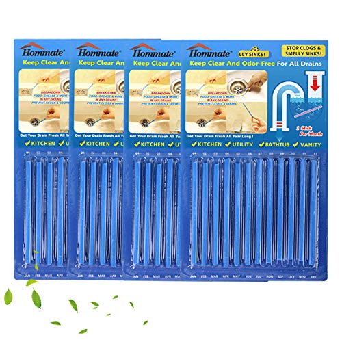 Hommate Drain Stix Drain Cleaner Sticks for Clogs & Odors Safe for Kitchen Bathroom As Seen As On TV 48 pck, Silver