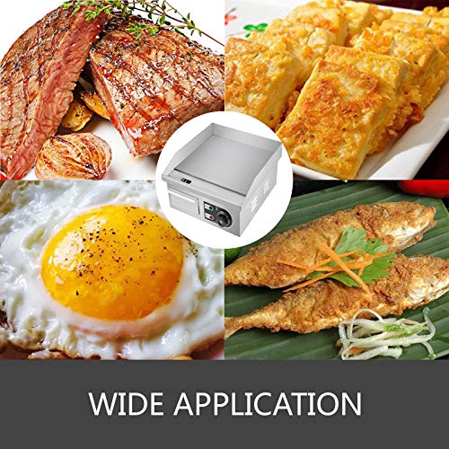 • VBENLEM 14" Electric Countertop Griddle Grill 110V 1500W Non-Stick Commercial Restaurant Gril Stainless Steel Flat Top Grill with Adjustable Temperature Control 122°F-572°F
