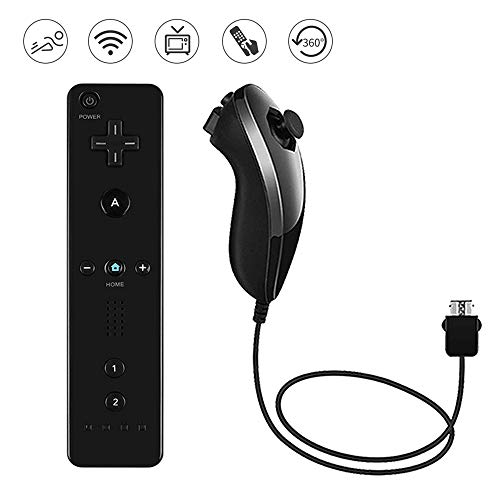Lactivx 1 Pack Nunchuck and Wii Remote Controller Compatible with Nintendo Wii Wii U Console - with Silicone Case and Strap (Black1)