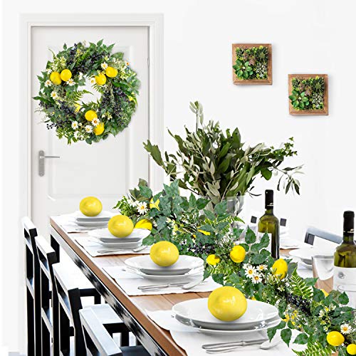WANNA-CUL 18 Inch Spring Farmhouse Fruit Wreath with Artificial Lemons for Front Door for Mother's Day with Blueberry and Green Leaves, Daisy,Lemon Summer Fruit Door Wreath for Wall or Home Decoration, 01-yellow