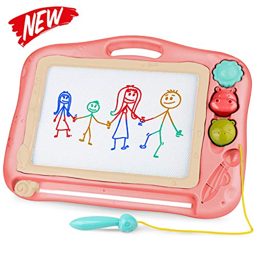 • Gamenote Magnetic Drawing Board for Kids 12×16 inch - Kids Toddler Drawing Board with Adorable Stamps, Magnet Pen, Gifts for Toddlers Colorful Erasable Magnet Doodle Toys(Pink)