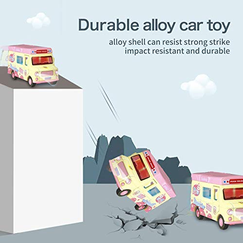 • Jsbaby Car Toy Pull Back Vehicle,Functional Food Truck with Music&Light,Die Cast Home Decor Model Vehicle,Openable Doors&Awning Friction (Pink)