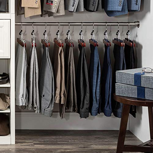 ZOBER High-Grade Wooden Pants Hangers with Clips 20 Pack Non Slip Skirt Hangers, Smooth Finish Solid Wood Jeans/Slack Hanger with 360° Swivel Hook - Pants Clip Hangers for Skirts, Slacks - Clamp Hangers, Cherry Wood