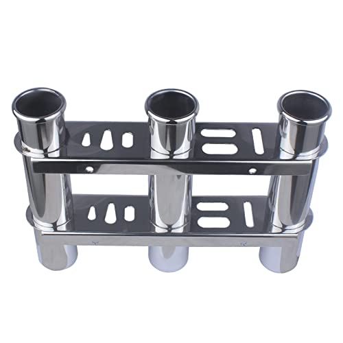 • 3 Tubes Fishing Rod Holder for Boat, 304 Stainless Steel 3 Tubes Linked Fishing Rod Rack Wall-Mounted Fishing Pole Holder with Tools Storage for Marine Boat Yacht RV